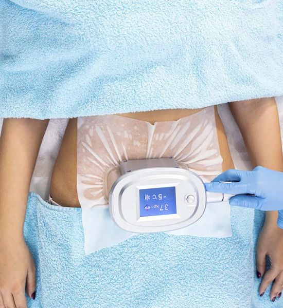- Elimina las células adiposas mediante el enfriamiento y con una aplicación superficial.